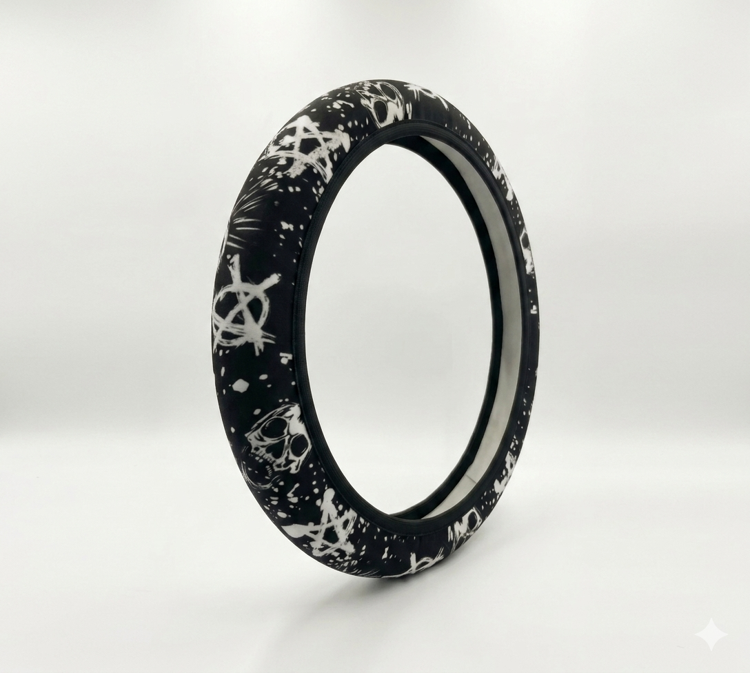 Give your car a bold, edgy upgrade with this black and white skull-pattern steering wheel cover. Designed for both style and comfort, it adds a unique aesthetic while improving your grip on the wheel for a smoother, more controlled drive. The soft, durable material feels great in your hands and helps protect your steering wheel from wear and tear over time. Whether you’re into a goth vibe or just want something that stands out, this cover instantly transforms your interior without trying too hard.